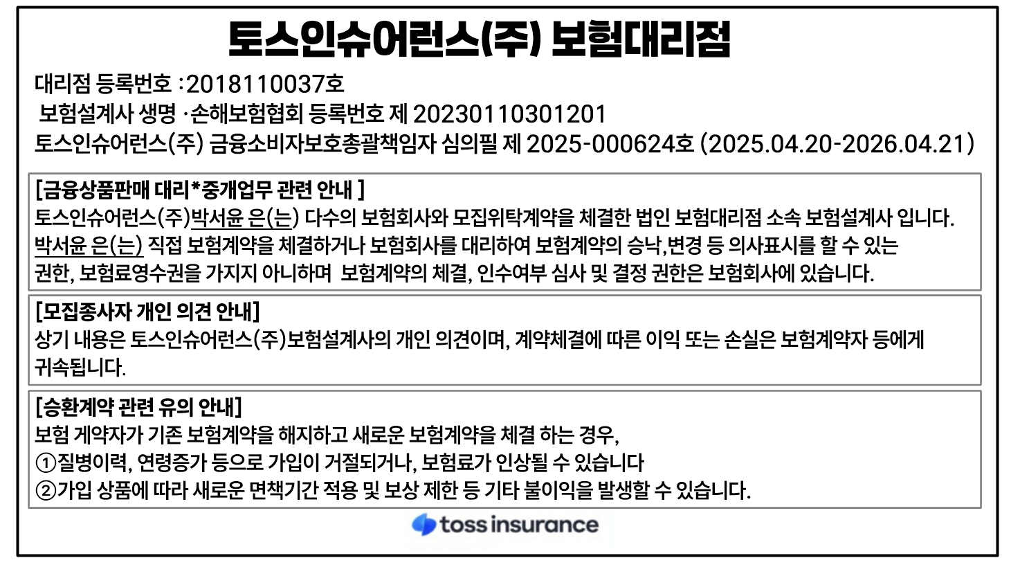 안녕하세요! 보험 지킴이 박서윤 팀장입니다!