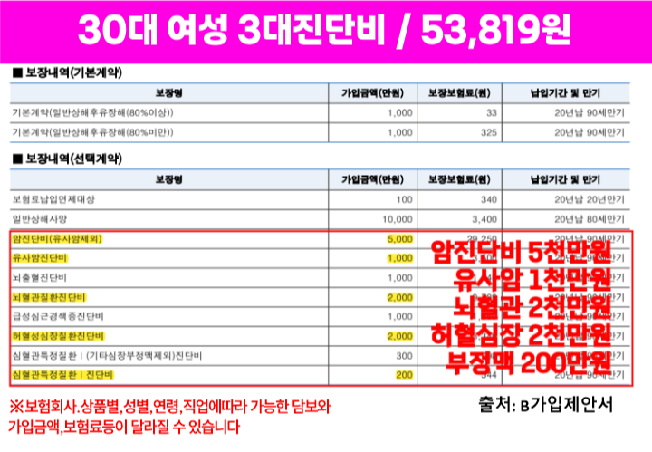 진단비만 따로 B회사로 준비해드렸습니다!