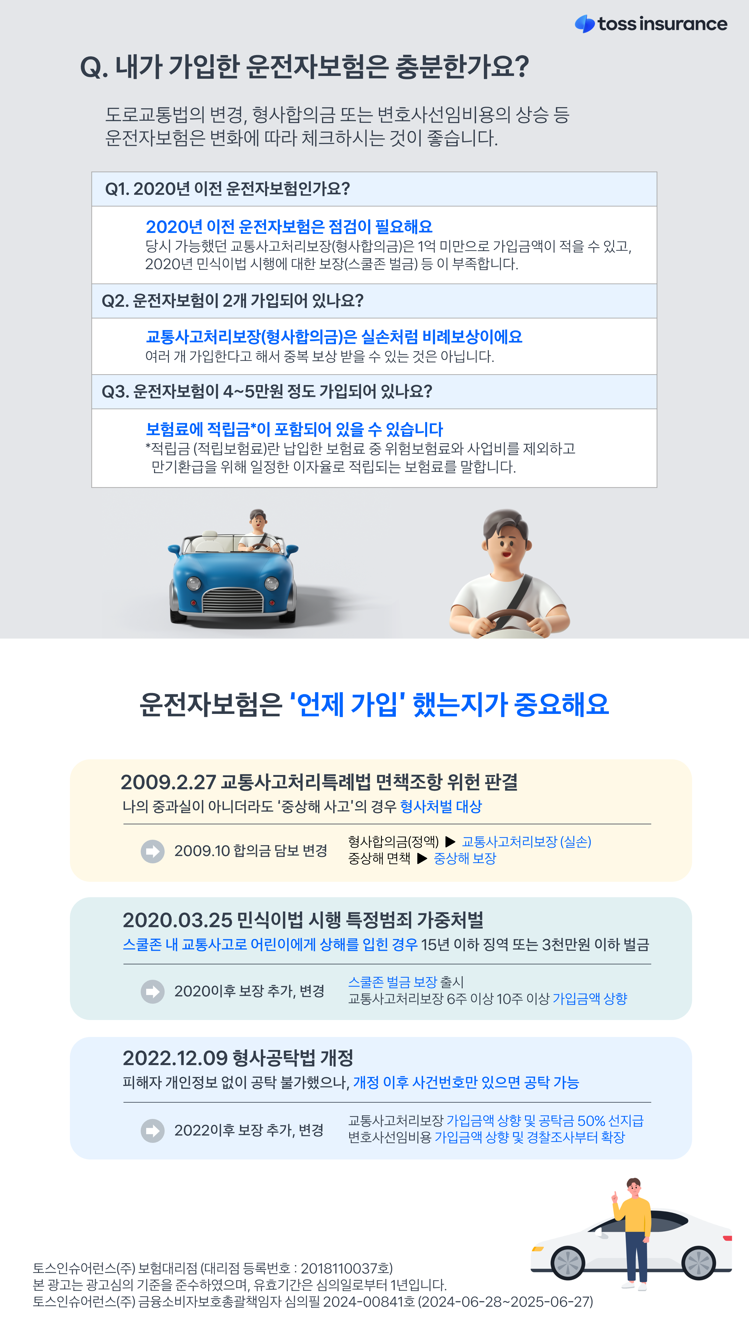 운전 중 발생하는 형사합의금, 벌금, 변호사 선임비 등 보장하며