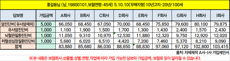 이렇게 보험사들마다 진단비가 저렴한 곳을 비교한다면