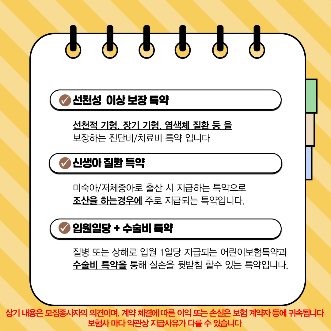 선천성 기형, 장기이상, 염색체 질환 등을 보장함으로써