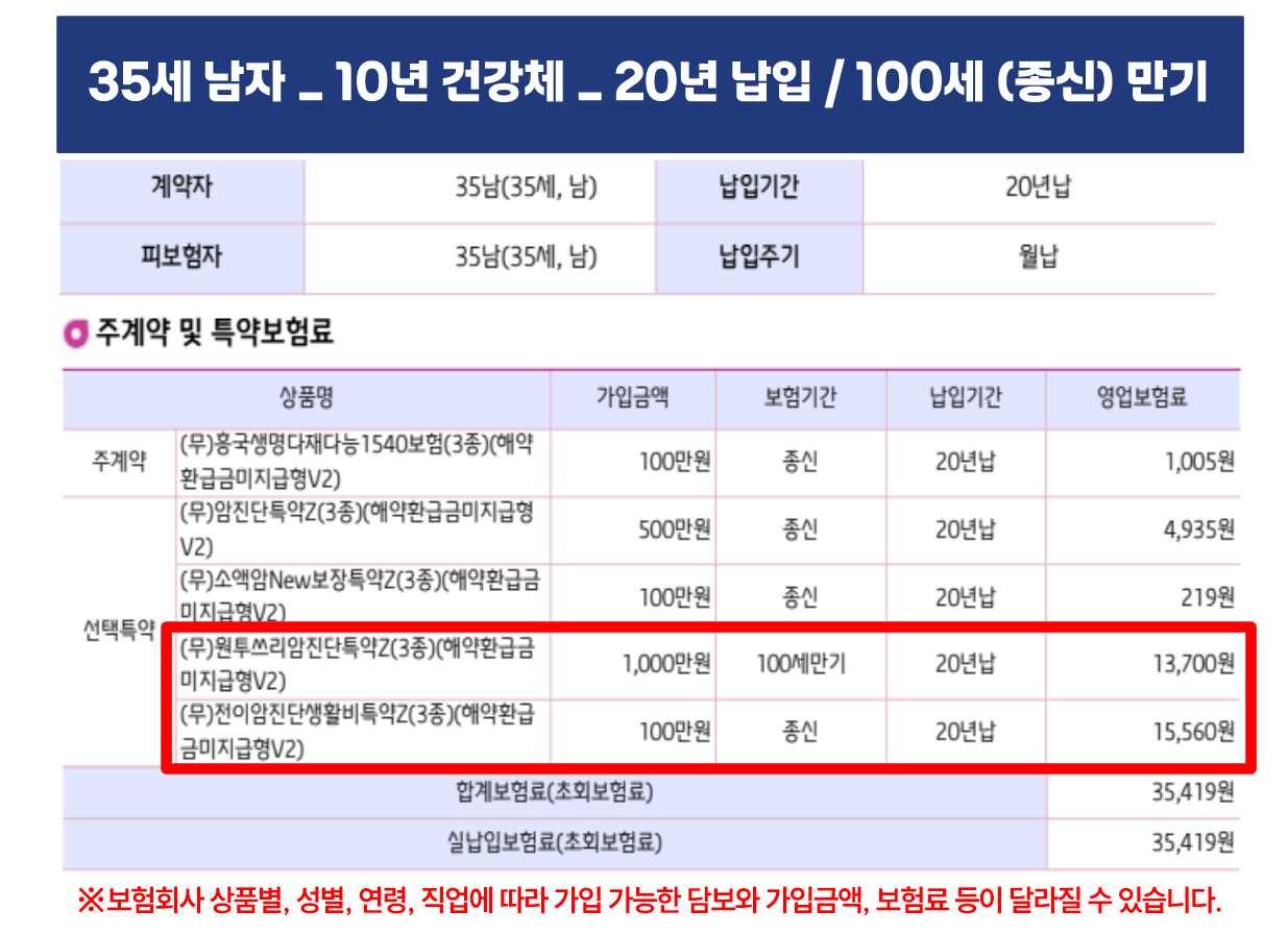 “ 건강체 할인형 / 1급 사무직 / 35살 남자 ”