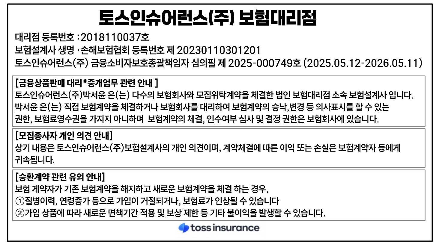 (상기 내용은 모집종사자의 의견이며 계약체결에 따른 이익 또는 손실은 보험계약자 등에 귀속됩니다)