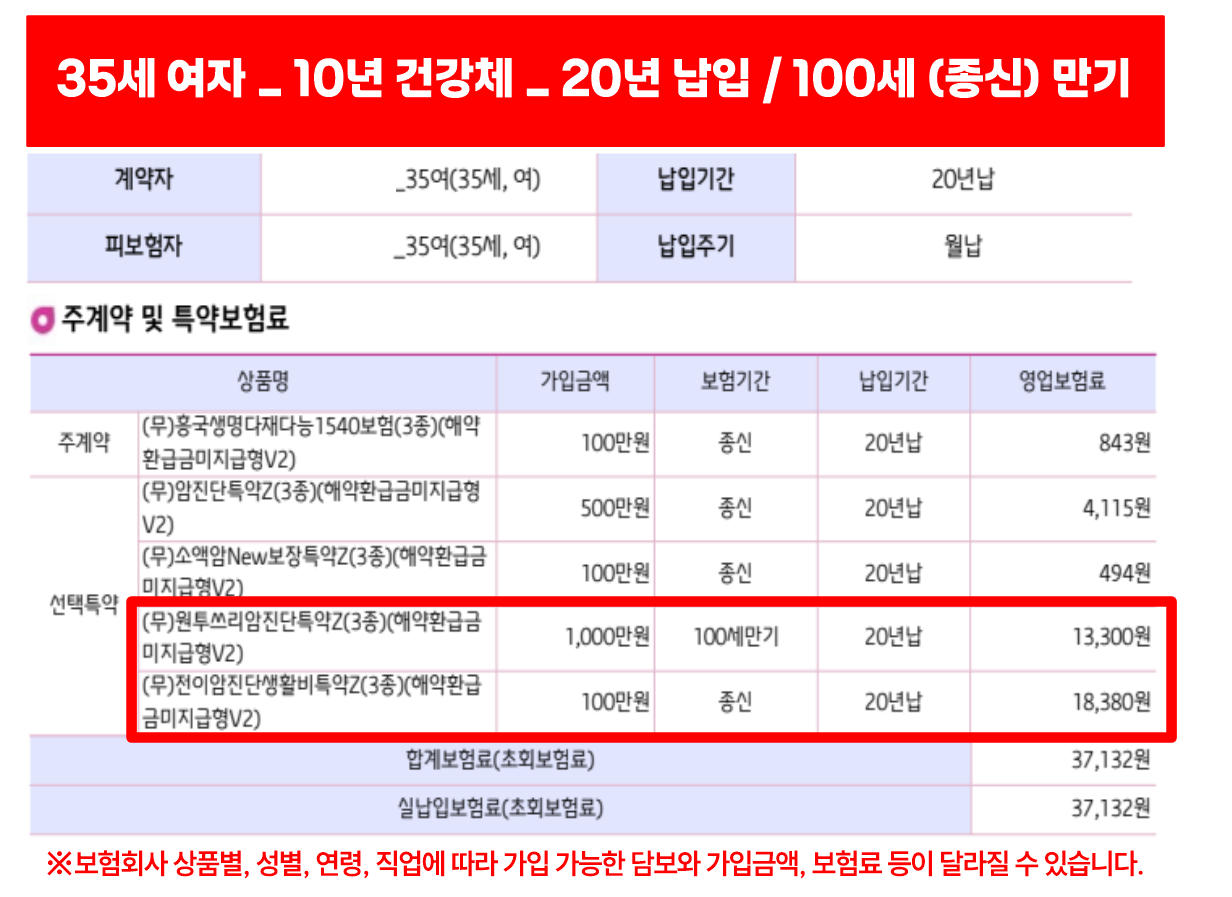 “ 건강체 할인형 / 1급 사무직 / 35살 여자 ”